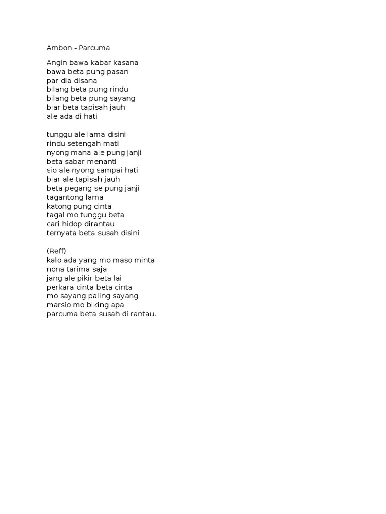 Lirik Lagu Ambon Parcuma Pdf